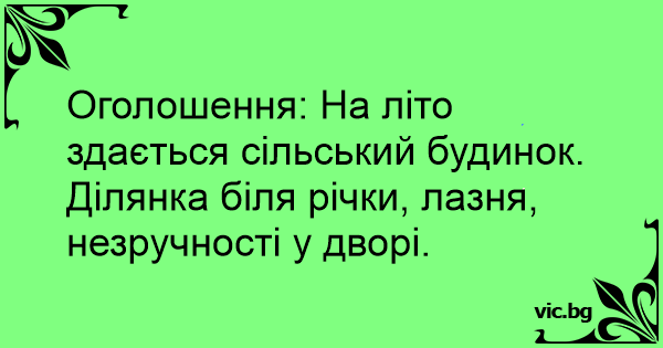 Оголошення: На літо здається сільський будинок. Ділянка біля річки, лазня, незручності у дворі.