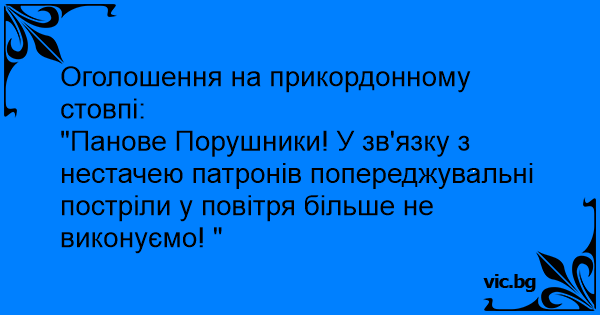 "Панове Порушники! У зв'язку з нестачею патронів попереджувальні постріли у повітря більше не виконуємо! "