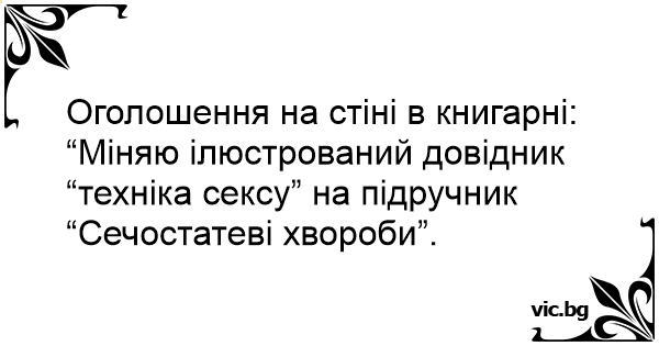 “Міняю ілюстрований довідник “техніка сексу” на підручник “Сечостатеві хвороби”.
