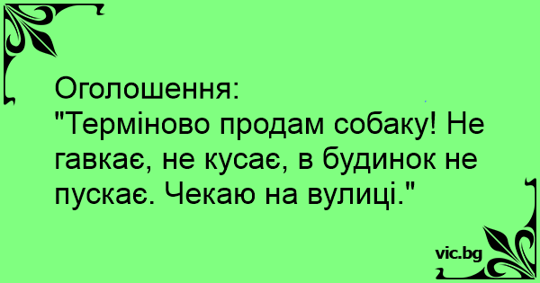 "Терміново продам собаку! Не гавкає, не кусає, в будинок не пускає. Чекаю на вулиці."