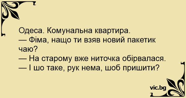 — Фіма, нащо ти взяв новий пакетик чаю?