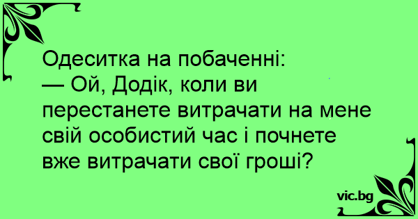 — Ой, Додік, коли ви перестанете витрачати на мене свій особистий час і почнете вже витрачати свої гроші?