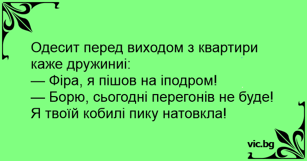 — Борю, сьогодні перегонів не буде! Я твоїй кобилі пику натовкла!