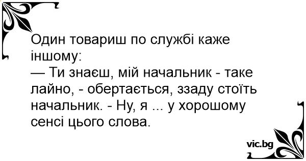 — Ти знаєш, мій начальник - таке лaйнo, - обертається, ззаду стоїть начальник. - Ну, я ... у хорошому сенсі цього слова.