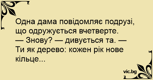 Одна дама повідомляє подрузі, що одружується вчетверте.