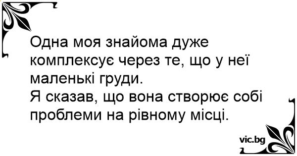 Одна моя знайома дуже комплексує через те, що у неї маленькі груди. Я сказав, що вона створює собі проблеми на рівному місці.