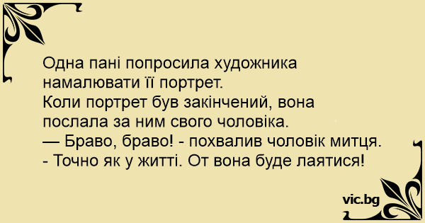 — Браво, браво! - похвалив чоловік митця. - Точно як у житті. От вона буде лаятися!