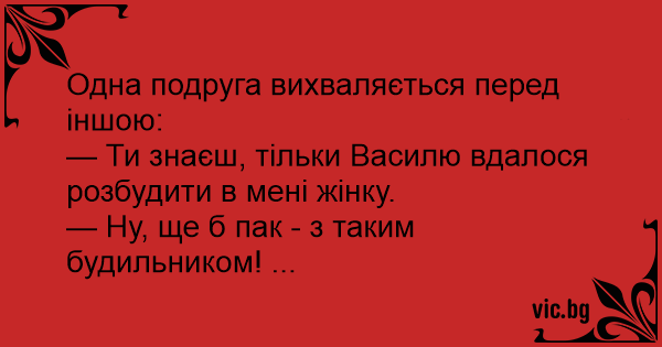 — Ти знаєш, тільки Василю вдалося розбудити в мені жінку.