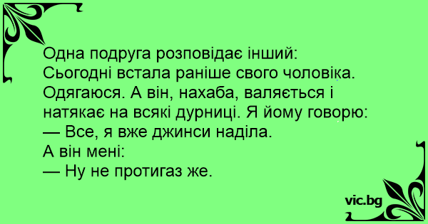 Сьогодні встала раніше свого чоловіка. Одягаюся. А він, нахаба, валяється і натякає на всякі дурниці. Я йому говорю: