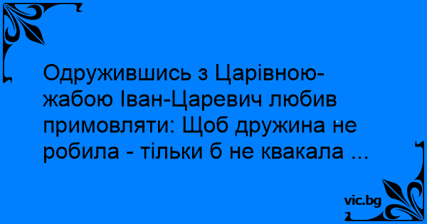 Одружившись з Царівною-жабою Іван-Царевич любив примовляти: Щоб дружина не робила - тільки б не квакала ...