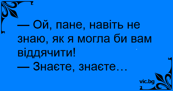 — Ой, пане, навіть не знаю, як я могла би вам віддячити!