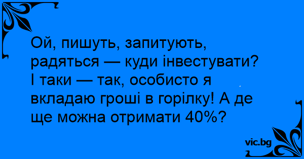 І таки — так, особисто я вкладаю гроші в горілку! А де ще можна отримати 40%?