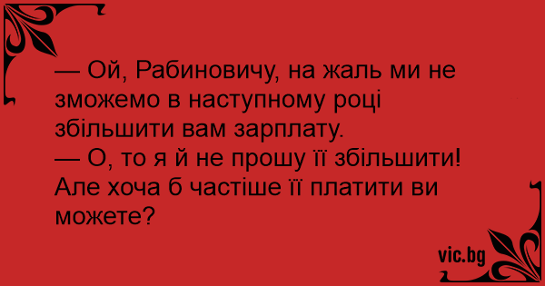 — Ой, Рабиновичу, на жаль ми не зможемо в наступному році збільшити вам зарплату.