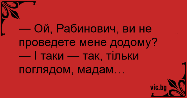 — Ой, Рабинович, ви не проведете мене додому?