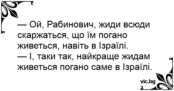 — Ой, Рабинович, жиди всюди скаржаться, що їм погано живеться, навіть в Ізраїлі.