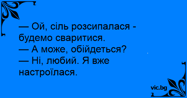 — Ой, сіль розсипалася - будемо сваритися.