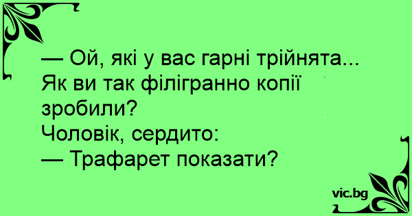 — Ой, які у вас гарні трійнята... Як ви так філігранно копії зробили?