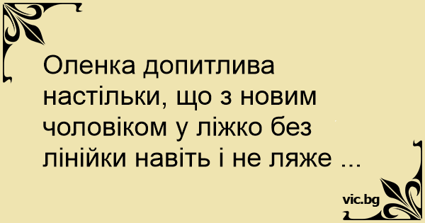 Оленка допитлива настільки, що з новим чоловіком у ліжко без лінійки навіть і не ляже ...