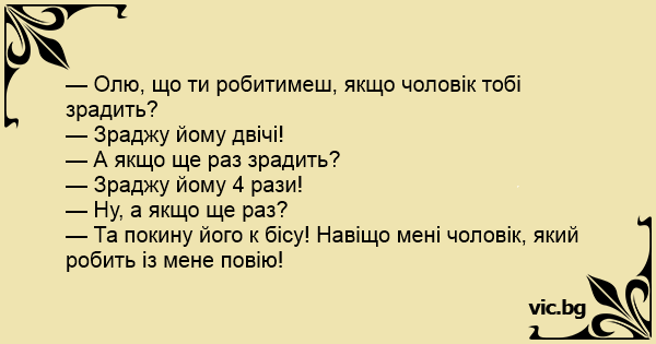 — Олю, що ти робитимеш, якщо чоловік тобі зрадить?