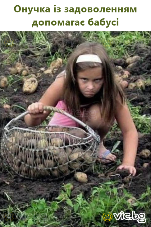 Внучето помага на баба с картофите