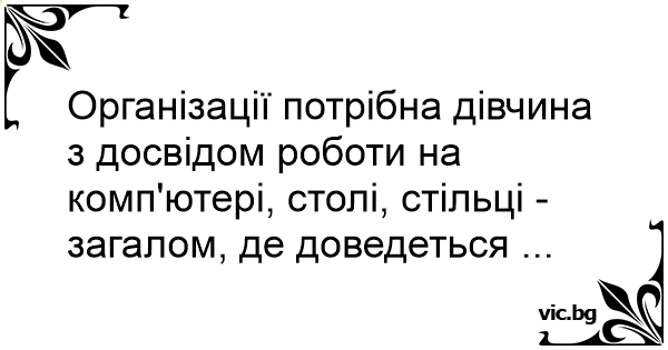 Організації потрібна дівчина з досвідом роботи на комп'ютері, столі, стільці - загалом, де доведеться ...