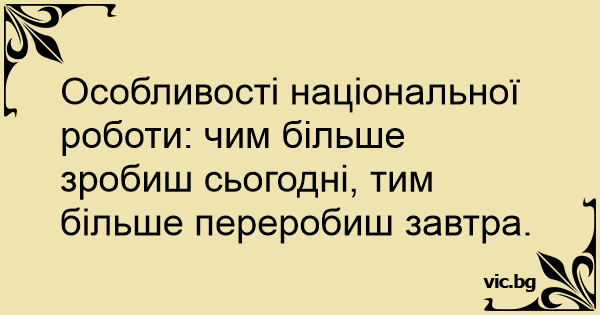 Особливості національної роботи: чим більше зробиш сьогодні, тим більше переробиш завтра.