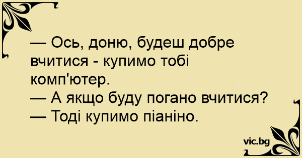 — Ось, доню, будеш добре вчитися - купимо тобі комп'ютер.
