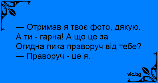 — Отримав я твоє фото, дякую. А ти - гарна! А що це за