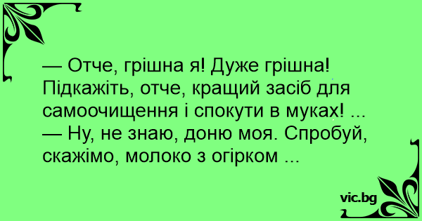 — Ну, не знаю, доню моя. Спробуй, скажімо, молоко з огірком ...