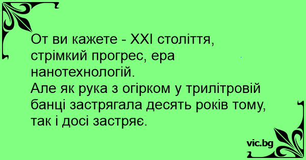 Але як рука з огірком у трилітровій банці застрягала десять років тому, так і досі застряє.