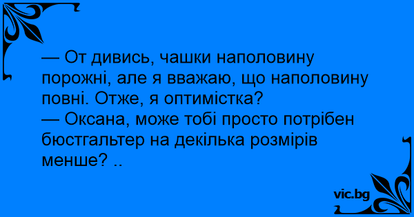 — Оксана, може тобі просто потрібен бюстгальтер на декілька розмірів менше? ..