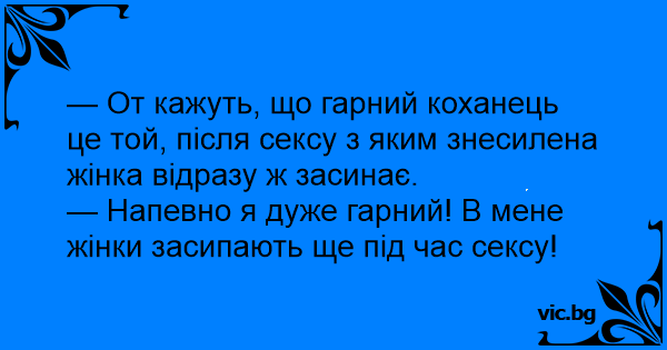 — Напевно я дуже гарний! В мене жінки засипають ще під час сексу!