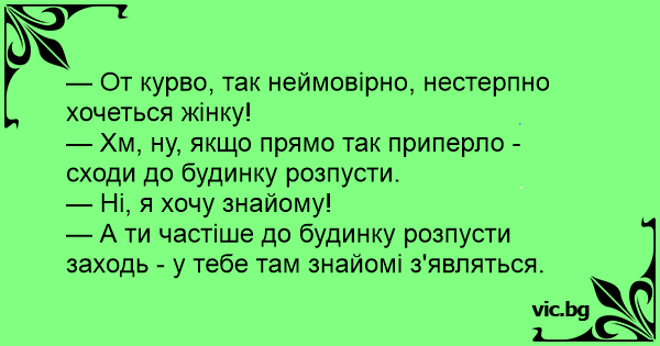 — От kуpbo, так неймовірно, нестерпно хочеться жінку!
