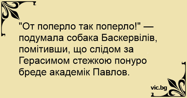 "От поперло так поперло!" — подумала собака Баскервілів, помітивши, що слідом за Герасимом стежкою понуро бреде академік Павлов.