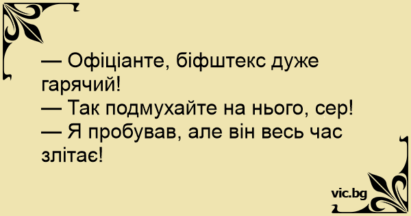 — Офіціанте, біфштекс дуже гарячий!