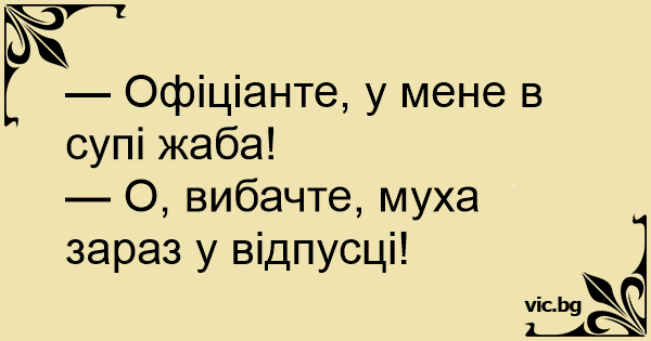 — Офіціанте, у мене в супі жаба!