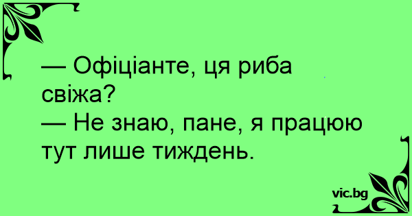 — Офіціанте, ця риба свіжа?