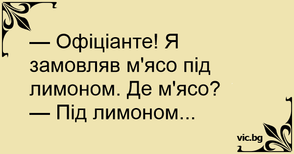 Ober: “Hoe vond u de biefstuk, mevrouw?” Mevrouw: “Per toeval, toen ik onder een blaadje sla keek.”