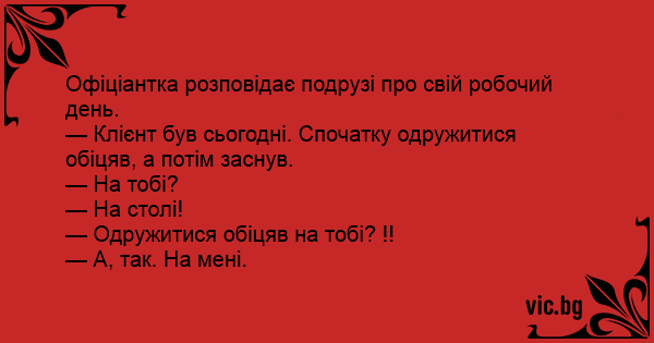 — Клієнт був сьогодні. Спочатку одружитися обіцяв, а потім заснув.