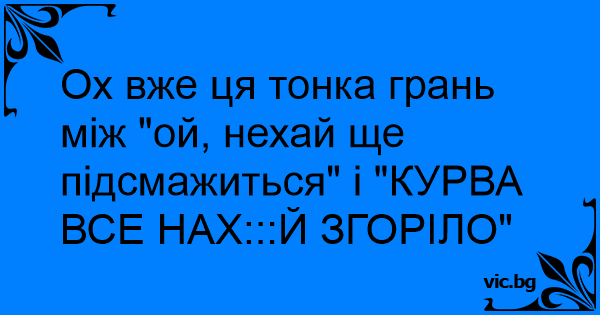 Ох вже ця тонка грань між "ой, нехай ще підсмажиться" і "KYPBA ВСЕ НАХ:::Й ЗГОРІЛО"