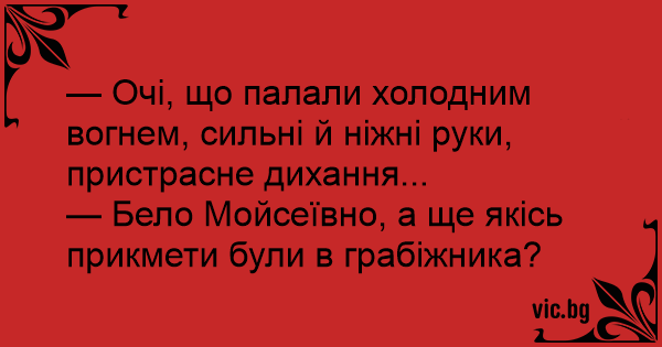 — Бело Мойсеївно, а ще якісь прикмети були в грабіжника?