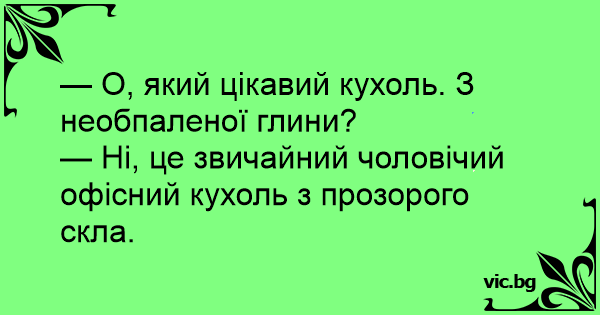 — Ні, це звичайний чоловічий офісний кухоль з прозорого скла.