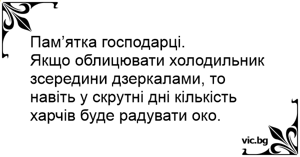 Якщо облицювати холодильник зсередини дзеркалами, то навіть у скрутні дні кількість харчів буде радувати око.