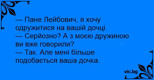 — Пане Лейбович, я хочу одружитися на вашій дочці.