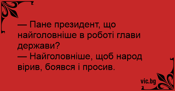 — Найголовніше, щоб народ вірив, боявся і просив.