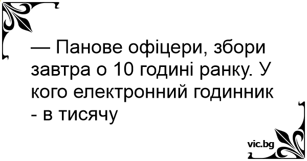 — Панове офіцери, збори завтра о 10 годині ранку. У кого електронний годинник - в тисячу