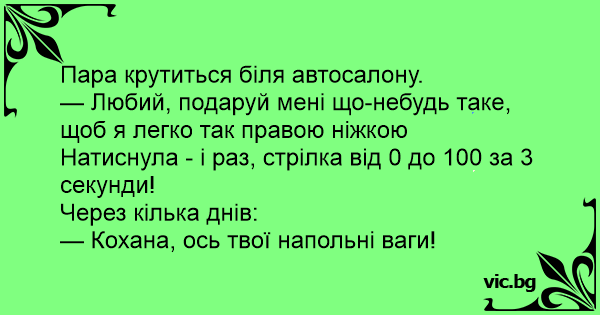 — Любий, подаруй мені що-небудь таке, щоб я легко так правою ніжкою