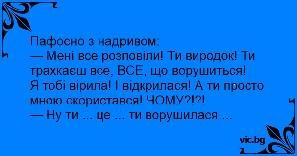 — Мені все розповіли! Ти виродок! Ти трахкаєш все, ВСЕ, що ворушиться!