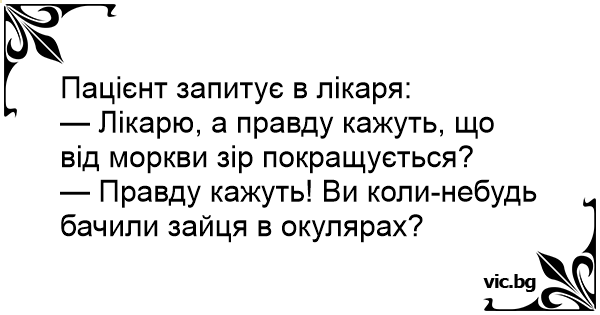 — Лікарю, а правду кажуть, що від моркви зір покращується?