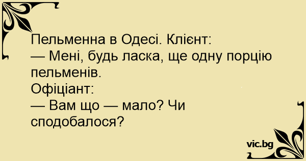 — Мені, будь ласка, ще одну порцію пельменів.